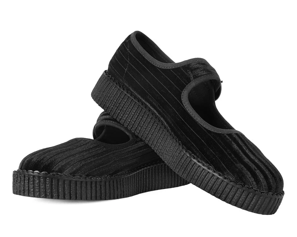 The perfect shoes to tie together any look. Features a low platform height that is approximately 1 ¼” at the heel and ¾” in the front and is made of a mixture of EVA and rubber that contributes to the sole’s bendability. Has an all black corduroy upper and comes with removable memory foam insoles for added comfort.