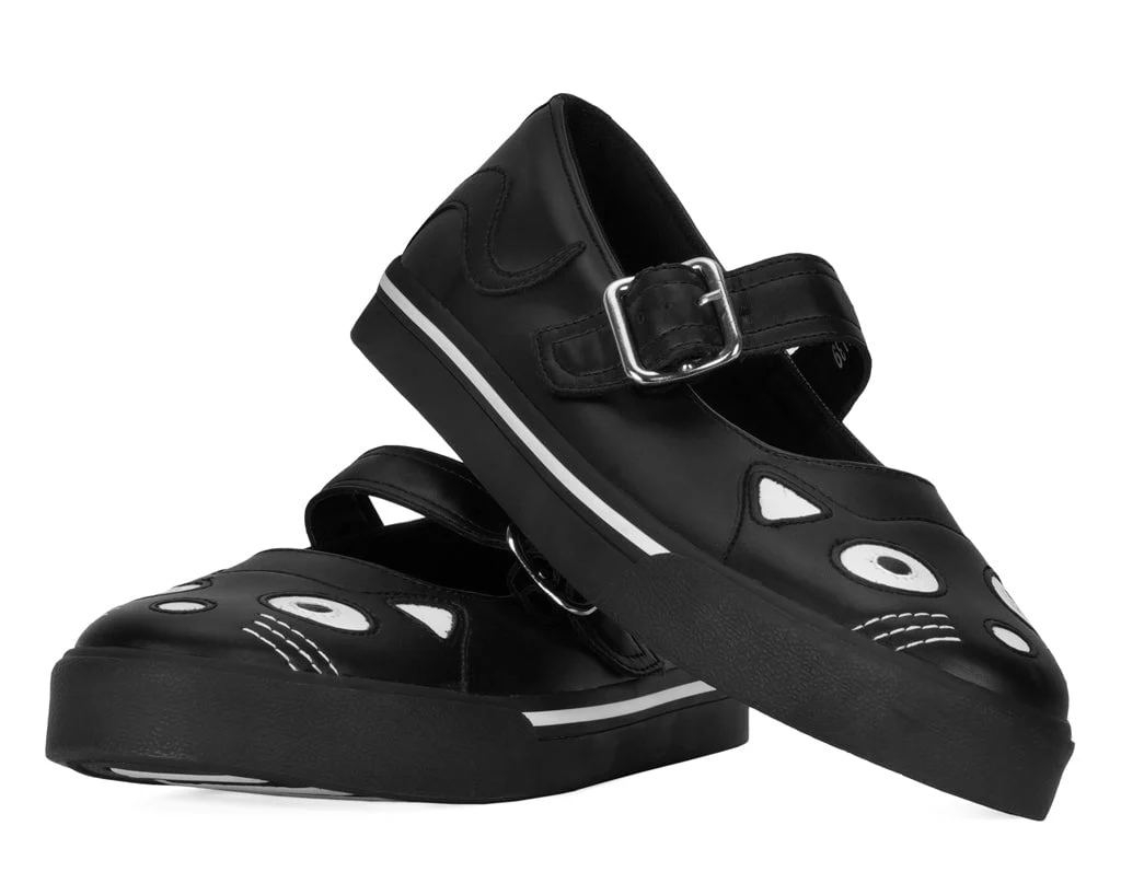 Black Kitty Face Mary Janes