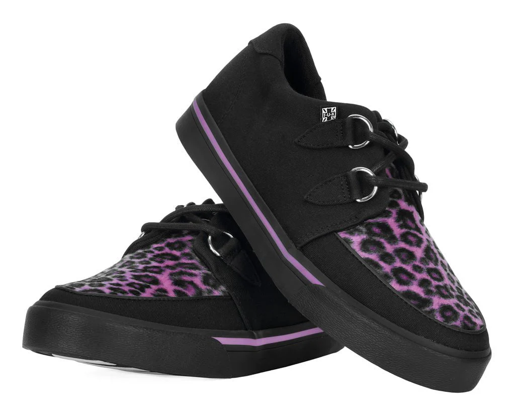 Follow your instincts and run wild in these creeper sneakers. Deliver an extra dose of fierceness with a vegan friendly black twill upper combined with a fun pink faux leopard fur front. Features our vulcanized VLK creeper sneaker silhouette that lends everyday wearability. D-ring lace up closure and has a lightly padded tongue along with removable memory foam insoles for added comfort.